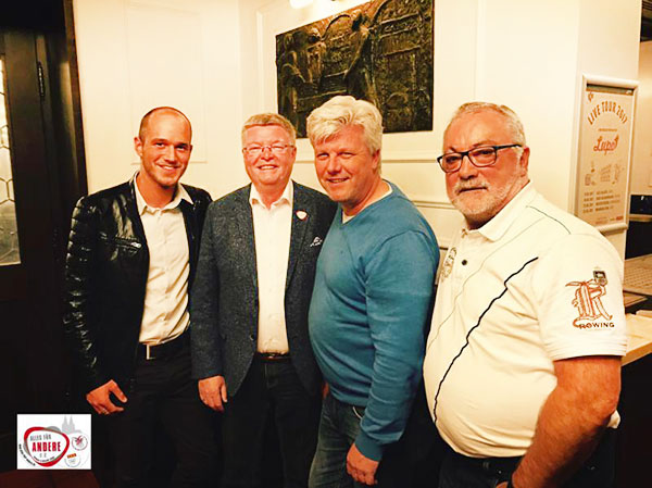 Köln – Auf der Jahreshauptversammlung des Wohltätigkeitsvereins „Alles für Andere e.V.“ wurde im Brauhaus Sion ein neuer geschäftsführender Vorstand ins Amt gewählt. Der bisherige Vorstand um Kopf Jürgen Blum hatte sich nach jahrelanger Arbeit nicht mehr zur Wahl gestellt. Die Position des 1. Vorsitzenden bekleidet ab sofort Manfred Schweinheim! An seiner Seite weiterhin der 2. Vorsitzende Robert Greven, der aufgrund einer schweren Skiverletzung in Abwesenheit gewählt wurde, und der neue Geschäftsführer Jörg Anders. Daniel Basalla als Schriftführer und Social Media Beauftragter sowie Adalbert Fischer als Schatzmeister komplettieren den Vorstand. „Es ist mir eine Ehre die Nachfolge von Köbes Schumacher und Jürgen Blum anzutreten. Wir bedanken uns beim bisherigen Vorstand für die sensationelle Arbeit und freuen auf alle Projekte, die vor uns stehen“, so Schweinheim.